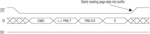 W procedurze odczytu danych z pamięci, po obliczeniu adresu, wykorzystano komendę o adresie &H52 (Main Menory Page Read). Jest to komenda odczytu strony pamięci z pominięciem bufora.