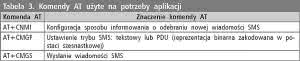 Każda komenda ma następującą postać: przedrostek AT, znak plusa, nazwę instrukcji ,dodatkowe znaki zależne od danej komendy oraz znak nowej linii i znak powrotu karetki. Listę wysyłanych przez mikrokontroler do modułu M95 komend AT (zarówno w fazie konfiguracji, jak też na potrzeby wysłania wiadomości SMS) oraz ich znaczenie przedstawiono w tabeli 3.