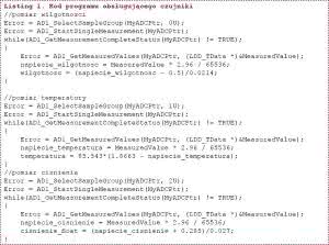 Na bazie tych funkcji stworzony został kod źródłowy obsługujący czujniki (listing 1).