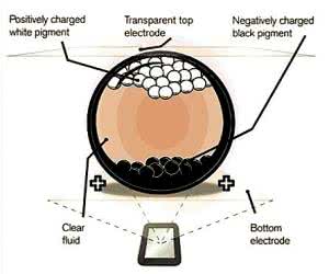 "Atrament" elektroniczny składa się z milionów maleńkich mikrokapsułek o średnicy ludzkiego włosa. Każda mikrokapsułka zawiera dodatnio naładowane cząstki białe i naładowane ujemnie cząstki czarne. Cząstki są zawieszone w przeźroczystej cieczy.