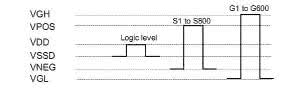 Z oczywistych względów najpierw ma się pojawić napięcie zasilające układy cyfrowe: VDD, potem ujemne napięcia zasilające bufor GATE: VGL i w końcu pozostałe napięcia VNEG, VPOS i VGH. Przy wyłączaniu wyświetlacza jako ostatnie jest wyłączane napięcie VGL. Taka sekwencja ma zapobiegać zjawisku zatrzaskiwania (latch-up) i w konsekwencji możliwości uszkodzenia układu zasilania lub sterownika wyświetlacza.