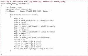 Dla każdej z takich sekwencji trzeba zdefiniować przebieg sterujący (rysunek 9). W naszym wypadku definicja sekwencji sterujących jest wykonywana przez funkcję make_vave_table ( listing 4). W wyniku działania tej funkcji jest zapisywana dwuwymiarowa tablica vave_end_table o wymiarach 256×12. Procedurę wyświetlania całego obrazu pokazano na listingu 5.
