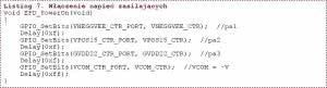 W rozwiązaniu modelowym wykorzystano zastosowano przetwornicę AME5142 oraz sterowne cyfrowo układy włączania/wyłączania napięć wyjściowych (rysunek 13). Procedurę sekwencji włączenia zasilania pokazano na listingu 7, a wyłączania na listingu 8.