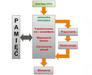 W 1996 roku na rynku już byli obecni główni gracze, którzy zdominowali na prawie dwie dekady świat grafiki 3D (większość z tych firm już nie istnieje). Robili oni ogromne postępy, najpierw napędzane przez potrzeby firm tworzących gry komputerowe, a z upływem czasu przez producentów niemal wszystkich użytkowanych przez nas urządzeń. W toku rozwoju GPU wykonano również API (OpenGL oraz Direct 3D), które wprowadziły znormalizowane sposoby korzystania z funkcji graficznych oferowanych przez GPU i ułatwiły tworzenie oprogramowania niejako niezależnie od sprzętu. Zastąpiły one produkty natywne, opracowane przez pionierskie firmy (z jedynym wyjątkiem - Glide firmy 3dfxpenGL przetrwało, ale zostało zbyt późno udostępnione na zasadach open source, co doprowadziło do "śmierci" tego bardzo lubianego pioniera grafiki 3D). Zapoczątkowany w ten sposób szybki rozwój doprowadził do opracowania przetwarzania strumieniowego1, które na wystarczająco wysokim poziomie abstrakcji w przeważającej części jest takie samo, bez względu na rodzaj GPU. Schemat przetwarzania strumieniowego pokazano na rysunku 1.
