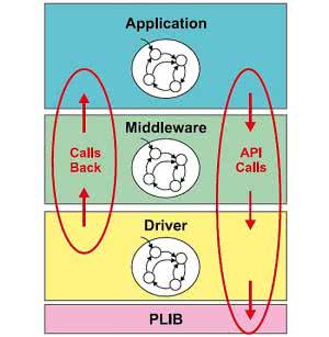 Funkcje warstwy aplikacji nie powinny bezpośrednio używać funkcji biblioteki peryferii, mimo że zapewniają one pewien poziom abstrakcji. Jak już wspominałem, w celu bezkolizyjnego zarządzania dostępem do peryferii funkcje PLIB są wywoływane przez procedury drivera urządzeń. Zapobiega to na przykład sprzecznym żądaniom dostępu od różnych modułów programu.