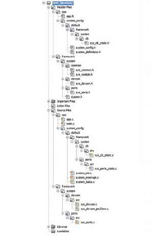 Po wygenerowaniu plików przez MPLAB Harmony Configurator mamy gotowy szkielet projektu, na którym można osadzić naszą warstwę aplikacji.