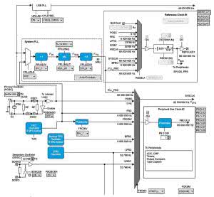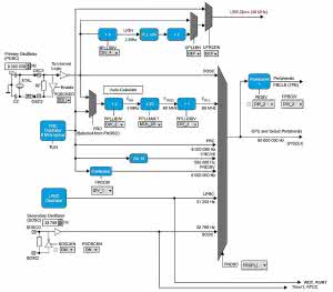 Jest to jeden z najbardziej zaawansowanych mikrokontrolerów rodziny PIC32MX. Pierwszą czynnością konfiguracyjną będzie ustalenie źródła i częstotliwości taktowania mikrokontrolera. System zegarowy powinien dostarczać trzy niezależnie programowane częstotliwości: