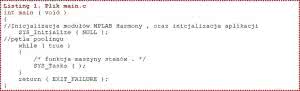 Wygenerowany przez MHC plik main.c zawiera tylko procedurę inicjalizacji SYS_Initialize() i niekończoną pętlę while(true) - listing 1. Ta pętla realizuje mechanizm poolingu, o którym pisałem wcześniej. Wywoływana w tej pętli procedura SYS_ Task() realizuje funkcję jednej maszyny stanów.