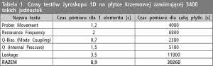Całkowity czas testowania urządzeń na pojedynczej płytce krzemowej wyniósł 30260 sekund (około 8 godzin 25 minut), więc biorąc pod uwagę możliwość równoległego testowania czterech jednostek ostatecznie czas spada znacznie poniżej poziomu 3 godzin.
