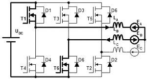 Natomiast w strategii C60Q- tranzystory przez pierwsze 60° okresu swojego przewodzenia pełnią jedynie rolę komutatorową, a przez okres kolejnych 60° spełniają funkcję regulacyjną (rysunek 6).