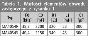 Obwód zastępczy takiego elementu piezoelektrycznego pokazano na rysunku 1. Ma on przede wszystkim charakter obciążenia pojemnościowego, ale ze względu na pewne właściwości indukcyjne ma częstotliwość rezonansową 40 kHz.