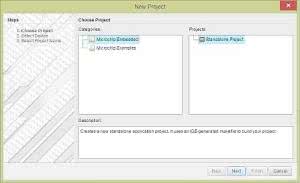 - Wybór rodzaju projektu. Na razie nie ma tu wielu opcji - można wybrać projekt typu embeded lub example (rysunek 6).