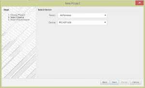 - Wybór mikrokontrolera. Można wybrać jeden z 8-bitowych mikrokontrolerów z rodzin PIC10F, PIC12F, PIC16F i PIC18F (rysunek 7).