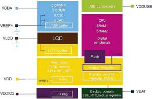 Napięcie wyjściowe wbudowanego stabilizatora (VCORE) służy do zasilania drugiej domeny. Tworzą ją: rdzeń Cortex-M4, pamięć SRAM oraz peryferia cyfrowe. Pamięć Flash jest zasilana zarówno napięciem VCORE, jak też VDD.