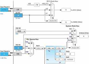 Zasoby wewnętrzne mikrokontrolerów z rodziny STM32 L4 mogą być taktowane z jednego z czterech źródeł sygnału zegarowego: HSE, HSI16, MSI lub PLL (rysunek 3).