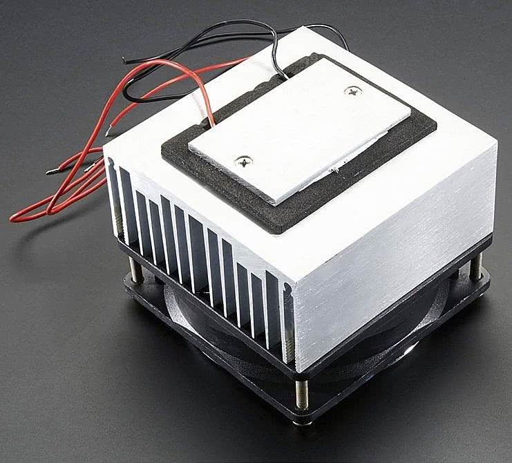 Fotografia 13. Przykładowy, kompletny system chłodzenia z ogniwem Peltiera. Po jego stronie "gorącej" zamontowano wentylator i radiator