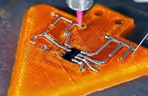 Ta drukarka jeszcze niedostępna w sprzedaży, za pomocą dwóch dysz łączy w jeden element plastikową obudowę i metalowe ścieżki. Oprogramowanie w odpowiednim momencie wstrzymuje wydruk informując, który element elektroniczny musimy umieścić w wydruku.