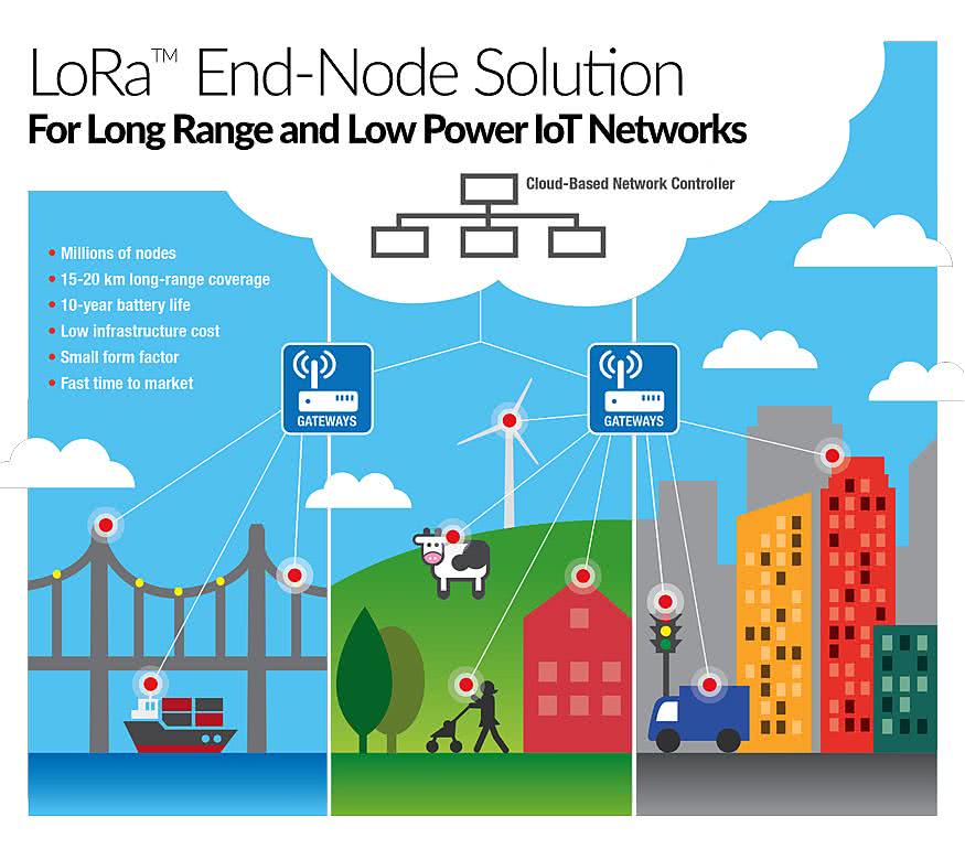 Używając pełnej nazwy, LoRaWAN jest specyfikacją energooszczędnej sieci o dużym zasięgu (LPWAN), w której z założenia będą pracowały głównie urządzenia zasilanie bateryjnie. Jako taka doskonale wpisuje się w potrzeby IoT. Architektura sieci LoRaWAN bazuje na topologii gwiazdy, w której bramki są transparentnymi pomostami zapewniającymi transmisję pomiędzy urządzeniami brzegowymi a serwerem centralnym. Bramki są dołączone do serwera za pomocą standardowych połączeń IP, natomiast urządzenia brzegowe wykorzystują do łączenia się z jedną lub wieloma bramkami technikę rozproszonego widma, z różną prędkością transmisji. Komunikacja z punktami brzegowymi może być dwukierunkowa, co umożliwia nie tylko odbierania komunikatów, ale również kontrolowanie przesyłających je urządzeń lub aktualizowanie ich oprogramowania. Co ciekawe, prędkość transmisji jest zmieniana zależnie od długości komunikatu (technika ADR, Adaptive Data Rate) i mieści się w zakresie 0,3…50 kbps.