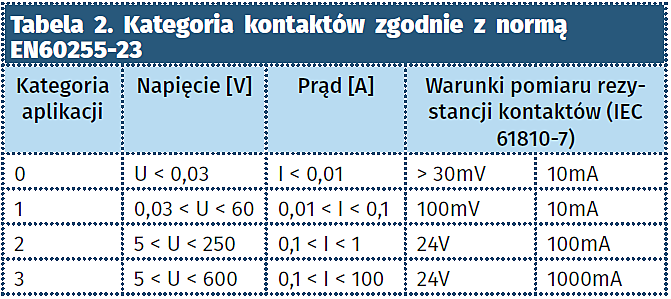 Dla wariantu wykonania kontaktów jako złocone, sugerowane jest obciążenie nie mniejsze niż 50 mW, 5 V/2 mA. Gdy konieczne jest uzyskanie mniejszych wartości przełączanej mocy prądu, możliwe jest połączenie równoległe większej liczby kontaktów. Na przykład dwa złocone kontakty połączone równolegle umożliwiają przełączanie prądu o parametrach 1 mW, 0,1 V/1 mA. Jedna ważna uwaga. Styki przekaźnika mogą być złocone w różnych celach. Na przykład, jeśli warstwa złota ma grubość 3…5 mm, to została ona nałożona dla ochrony styków podczas przechowywania przekaźnika i nie ma wpływu na jego parametry elektryczne.