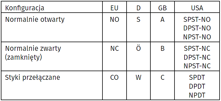 Stosowany powszechnie w Europie standard EN50005 zaleca stosowanie następującej numeracji dla doprowadzeń przekaźników:
