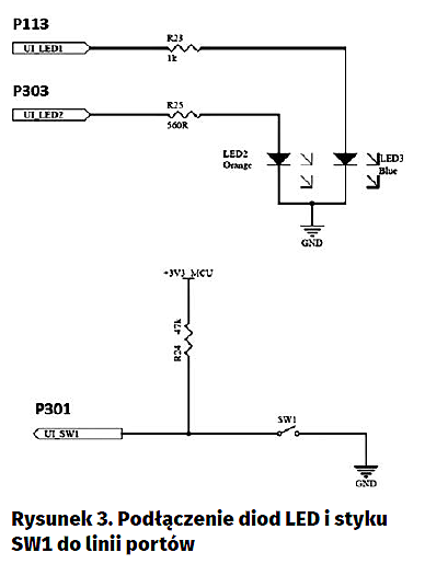 Działanie programu jest bardzo proste. O stanie diody LED (zapalona lub zgaszona, decyduje wartość wpisana do zmiennej level (zainicjowana na wartość 1). Funkcja biblioteki warstwy HAL g_ioport.p_api –> pinWrite zmienia stan linii portu w zależności od wartości zmiennej level. Potem zmienna level zmienia swój stan na przeciwny i program jest zatrzymywany na semaforze sw1_semaphore do czasu jego zwolnienia. Zwolnienie semafora jest wykonywane w procedurze przerwania zewnętrznego IRQ6 zgłaszanego po naciśnięciu przycisku SW1. W pętli nieskończonej ponownie jest wpisywana wartość zmiennej level do rejestrów portu P113 i stan diody LED zmienia się na przeciwny. Potem program zatrzymuje się na semaforze i cały cykl jest wykonywany ponownie. Pozostaje teraz skompilowanie projektu, zapisanie kodu wynikowego do pamięci Flash mikrokontrolera i sprowadzenie poprawności działania.