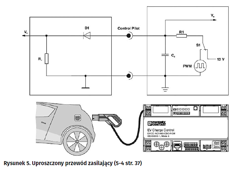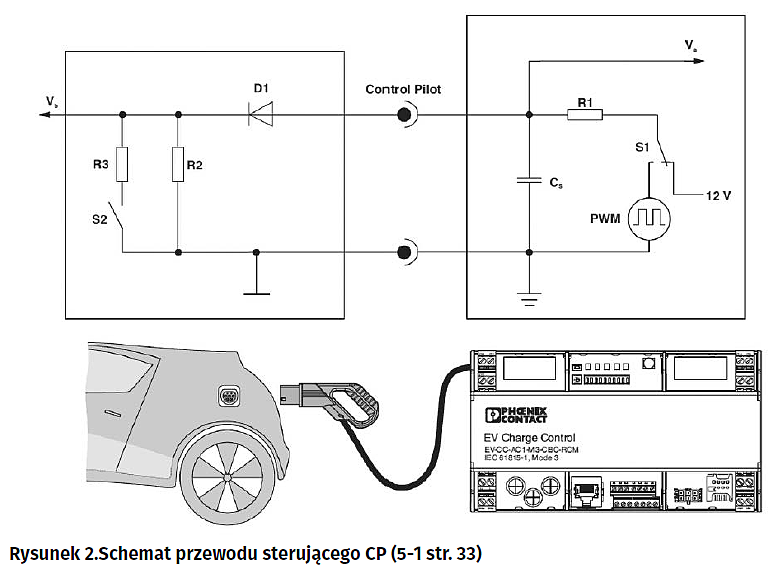 Za pośrednictwem przewodu sterującego CP (rysunek 2) jest przeprowadzana dwukierunkowa komunikacja pojazdu z infrastrukturą ładującą Ta ostatnia rozpocznie ładowanie tylko wtedy, gdy zostaną odebrane następujące informacje: