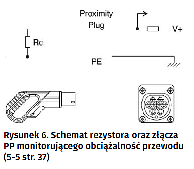 Bezpośrednie tłumaczenie oznacza „wtyczkę zbliżeniową”, która służy do wykrywania złącza ładowania w stacji ładującej i do określania jego aktualna dopuszczalnej obciążalności (rysunek 6). Stanowi on zabezpieczenie przed uszkodzeniem izolacji roboczej przewodu, co w konsekwencji może prowadzić do pożaru lub niebezpiecznego w skutkach porażenia prądem elektrycznym.