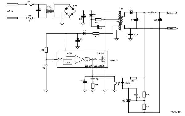 Własną przetwornicę zaporową najłatwiej wykonać w oparciu o gotowy układ scalony. Przykładowe rozwiązania, wykorzystujące układy scalone firm Power Integrations i ST Microelectronics pokazano na rysunkach 2 i 3. Oczywiście to tylko przykłady. W handlu jest dostępnych wiele rozwiązań, od różnych producentów.