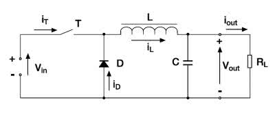 Przetwornica pracuje w dwóch okresach. W pierwszym przełącznik jest zwarty, co powoduje dostarczanie energii i jej zamianę na pole magnetyczne dławika, a drugim przełącznik jest otwierany, a energia zgormadzona w dławiku jest dostarczana do obciążenia za pomocą diody usprawniającej, w tym cyklu spolaryzowanej w kierunku przewodzenia. Podobnie są zbudowane przetwornica podwyższająca napięcie i inwerter – zmienia się jedynie sposób połączeń komponentów odpowiedzialnych za transmisję mocy.