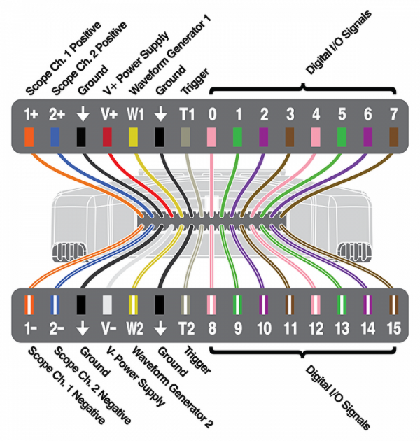 Na rysunku 3 pokazano złącze płytki Analog Discovery 2, natomiast w tabeli 2 umieszczono opisy poszczególnych sygnałów.