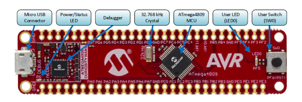 Na płytce zostały zamontowane: mikrokontroler ATMega4809 MFR, jeden żółty LED, przycisk, oscylator 32768 Hz, układ pełniący funkcję programatora i debuggera, wirtualnego portu COM i dwukanałowego analizatora logicznego (debugger może współpracować z MPLAB X IDE i z ATmel Studio 7), złącze mikro USB, stabilizator LDO MIC5353 regulowany przez układ debuggera w zakresie od 1,8 V do 5,1 V (górna granica jest wyznaczana przez napięcie portu USB).
