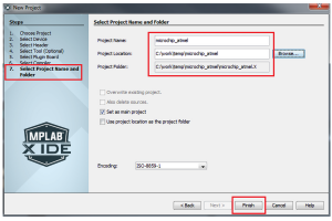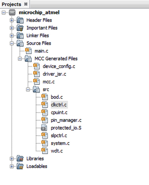 Kreator projektu w MPLAB X nie generuje automatycznie szkieletu projektu z podstawowymi plikami, w tym z plikiem main.c. Programista musi albo sam sobie te pliki utworzyć w katalogu projektu, albo skorzystać z wtyczki konfiguratora MCC.