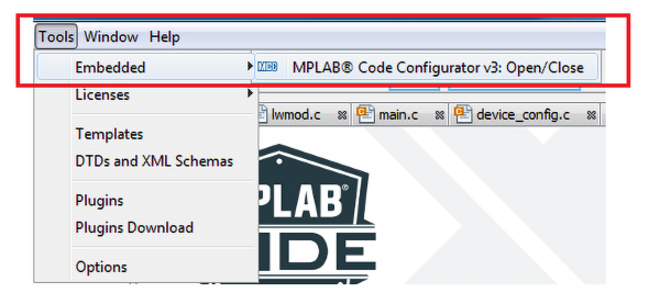 Ja go bardzo chętnie używam do konfigurowania mikrokontrolerów PIC. W czasie mojego testu z ATmega4809, MCC działał poprawnie, w zakresie, w jakim miałem okazję wykorzystać go do bardzo projektu demonstracyjnego. Konfiguratory są szeroko stosowane dla bardziej rozbudowanych mikrokontrolerów i warto tu wspomnieć o STM32CubeMX dla STM32, czy konfiguratorze wbudowanym w IDE e2studio Renesasa. MCC jest uruchamiamy z poziomu paska narzędziowego Tools → Embedded (rysunek 13).