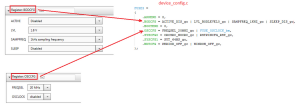 Ja ustawiłem jako źródło zegara OSC20M i preskaler na wartość 2, aby mikrokontroler w czasie testów był taktowany częstotliwością 10 MHz. Zakładkę Easy Setup elementu System Module pokazano na rysunku 17. Na rysunku 18 p okazano przykłady ustawień rejestrów konfiguracyjnych i fragment kodu źródłowego definiujący rejestry konfiguracyjne mikrokontrolera pochodzący z pliku device_config.c wygenerowanego przez MCC na podstawie tych ustawień. Na listingu 1 zamieszczono definicję bitów konfiguracyjnych, a na listingu 2 funkcję zapisującą rejestr CLKCTRL.