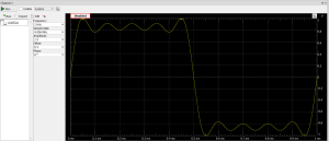 Dzięki zmianom wartości w tablicach "amp" (amplituda) i "ph" (faza) można uzyskać różne przebiegi, na przykład prostokątny, jak pokazano na rysunku 11. Po uzyskaniu pożądanego kształtu należy kliknąć przycisk "OK”"- zaprogramowany wzorzec kształtu powinien pojawić się na liście pokazywanej w trybie "custom" (rysunek 12).