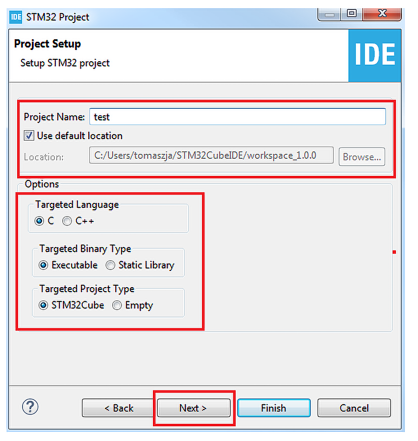 IDE jest oparte na frameworku Eclipse/CDT i ma kompilator GCC bez ograniczeń wielkości kodu. Pierwsze wrażenie z użytkowania tego pakietu jest bardzo pozytywne. Wszystko działało poprawnie, co na przykład w przypadku debuggera nie musi być normą. Kreator projektu automatycznie pobierał paczkę z firmware'em i nie musiałem się martwić o to, by ją ręcznie pobrać i zainstalować (rozpakować). Gwarantuje to, że w momencie tworzenia projektu mamy do dyspozycji najbardziej aktualną wersję. ST zadbał też o możliwość importu projektów tworzonych dla innych środowisk IDE.