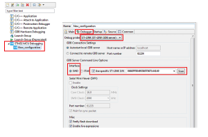 Dużo lepszym pomysłem jest zastosowanie sprzętowego symulatora ST-Link z interfejsem SWD, bo taki jest wbudowany w praktycznie każdy firmowy moduł ewaluacyjny. Dostępne są również niezależne programatory innych producentów. Żeby skonfigurować sprzętową symulację działania programu, trzeba w oknie Debug Configuration kliknąć 2× na STM32 MCU Debugging. W oknie konfiguracji przechodzimy do zakładki Debugger. W oknie Debug Probe wybieramy ST-Link, w oknie Interface SWD. Jeżeli do komputera jest podłączony moduł z programatorem/debuggerem, to po zaznaczeniu USE specific ST-LINK S/N i kliknięciu na scan powinien się pojawić numer ID tego programatora. W trakcie testów do portu USB podłączyłem wybrany w selektorze projektu moduł ewaluacyjny. Zostało to pokazane na rysunku 11. Przed uruchomieniem debuggera IDE wykrył, że ST-Link zainstalowany w module ma wgrana starą wersję firmware'u i przy okazji została ona zaktualizowana.