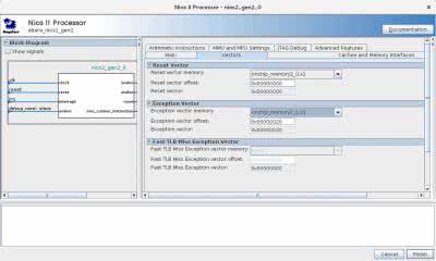 Rysunek 6. Ustawienie pamięci RAM używanej przez mikroprocesor Nios II