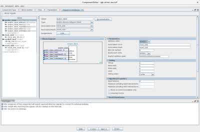 Tworzenie sterownika zaczynamy w oknie Platform Designera, dodając go do poprzednio utworzonego systemu z Niosem II. W oknie IP Catalog, po lewej stronie, należy kliknąć dwukrotnie na New Component… W nowo otwartym oknie edytora komponentów, w zakładce Component Type wpisujemy nazwę sterownika, natomiast w zakładce Signals & Interfaces definiujemy wszystkie sygnały potrzebne do połączenia sterownika z resztą systemu: