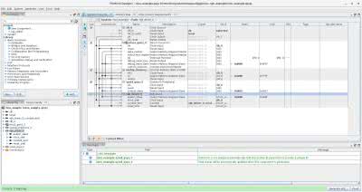 Po upewnieniu się, że symulacja pokazuje poprawne wyniki, możemy uruchomić przykład na zestawie maXimator. Wróćmy więc do głównego okna Quartusa i wybierzmy z menu Assignments opcję Pin Planner. W oknie, które zobaczymy, możemy dołączyć sygnały wejściowe i wyjściowe do fizycznych wyprowadzeń układu jak na rysunku 14: