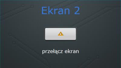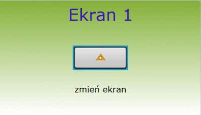 W podobny sposób jak widget image, umieszczamy na pulpicie widget Text Area. Na zakładce parametrów w polu Text wpisujemy „Ekran 1”. Zmieniając parametry dobieramy wielkość czcionki, kolor i położenie. Umieszczamy na pulpicie widget Button. W opcjach STYLE można wybrać jeden z predefiniowanych kształtów dla przycisku albo, tak jak w przypadku tła, przygotować obrazki z wyglądem przycisku naciśniętego i zwolnionego a następnie na listach Pressed Image i Released Image wskazać położenie obrazków. W momencie naciskania i zwalniania klawisza umieszczonego na ekranie, obrazki będą automatycznie zastępowane. W opcjach NAME zmieniamy nazwę przycisku na „button1”. Przygotowany ekran powinien wyglądać podobnie jak na rysunku 2.