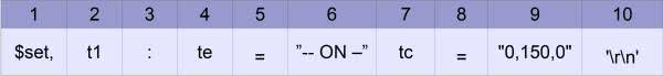 $set,t1:te=”-- ON –”tc=”0,150,0”