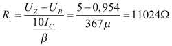 Przez rezystor R1 polaryzujący bazę tranzystora przepuścimy prąd 10-krotnie większy od prądu bazy. R1 będzie więc równy: