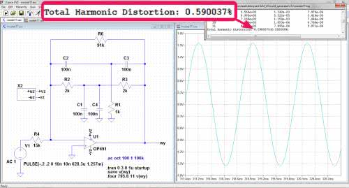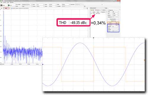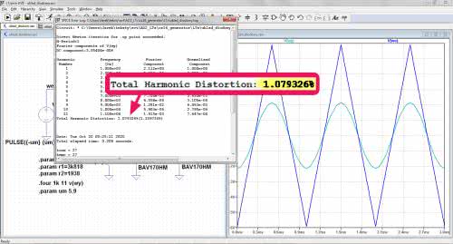 Jak widać, dla odpowiednio dobranego poziomu przycięcia przebiegu trójkątnego można uzyskać zawartość harmonicznych na poziomie kilku procent. O ile w pewnych zastosowaniach technicznych jest to wartość do zaakceptowania, o tyle gdybyśmy chcieli użyć takiego generatora jako przyrządu pomiarowego, byłaby to całkowita klapa. Czy można więc coś z tym zrobić?