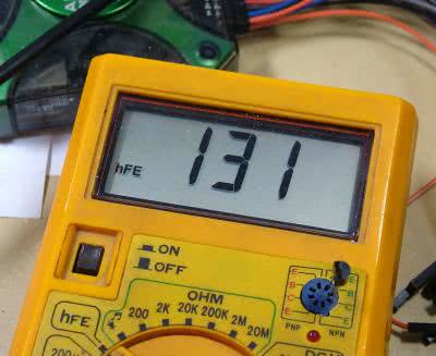 Zobaczmy więc, jak ten parametr wygląda w rzeczywistości. Zmierzymy miernikiem uniwersalnym Metex wzmocnienie prądowe tranzystora. Nie będziemy jednak traktować tego pomiaru jako rozstrzygającego ostatecznie wątpliwości, gdyż nie wiemy, w jakich warunkach miernik mierzy parametr hFE. Wynik pomiaru pokazano na fotografii 1.