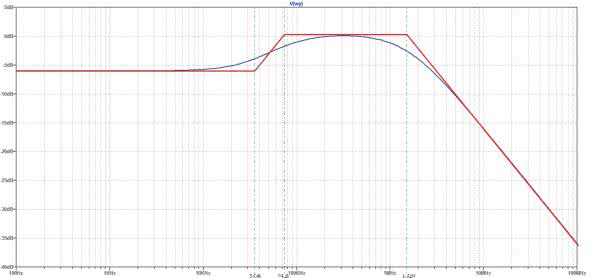 Choć w pierwszej chwili może wydawać się, że charakterystyki nie są jednakowe, to jednak po nałożeniu jednej na drugą okazuje się, że są one poprawne. Różnice wynikają z przyjęcia charakterystyki asymptotycznej dla wykresu odręcznego (rysunek 8). Ponadto bliskość zer i biegunów transmitancji powoduje, że rzeczywista charakterystyka nie zawsze nadąża za asymptotą. Jest to dość dobrze widoczne na odcinku pomiędzy 100 kHz a 1 MHz, w którym wykres asymptotyczny wyraźnie przekracza poziom 0 dB, a rzeczywisty tylko nieznacznie, niemal niezauważenie.
