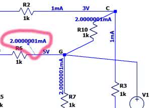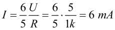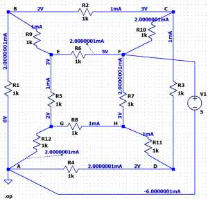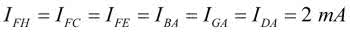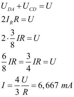 Prądy płynące przez zielone rezystory są równe I/6, z więc 6m/6=1 mA. Ostatecznie: