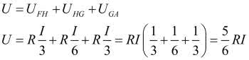 Analogiczne rozważanie przeprowadzimy dla rezystorów zielonych, przez które płynie prąd I/6.