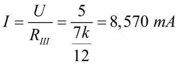 Dla przyjętych wartości (U=5 V, R=1 kΩ) prąd całkowity jest równy 6,67 mA i dalej: