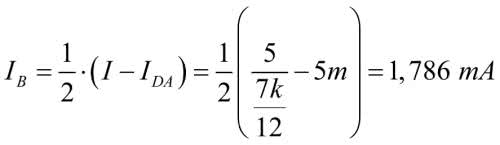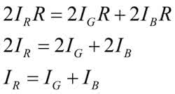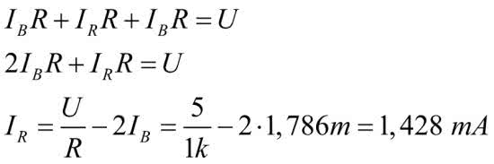 Mając prąd IB, łatwo możemy policzyć prąd IR płynący przez czerwony rezystor. Korzystamy z równania opisującego spadki napięć w gałęzi ABCD: